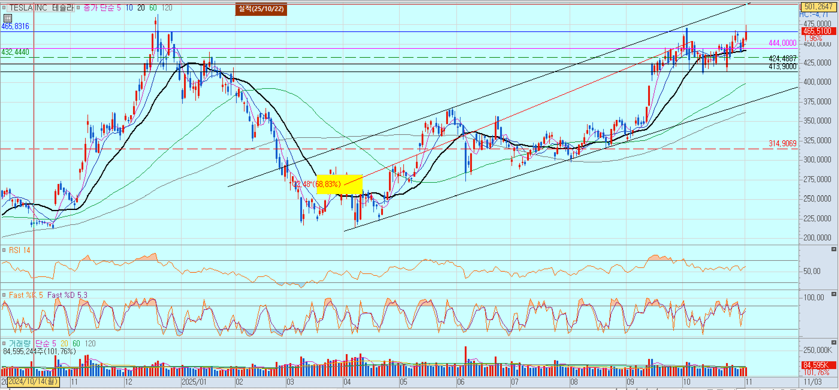 매매계획: 익절은 530~540달러, 손절은 120주평선인 437달러인데 이때 추가 매수도 고려해보자.
