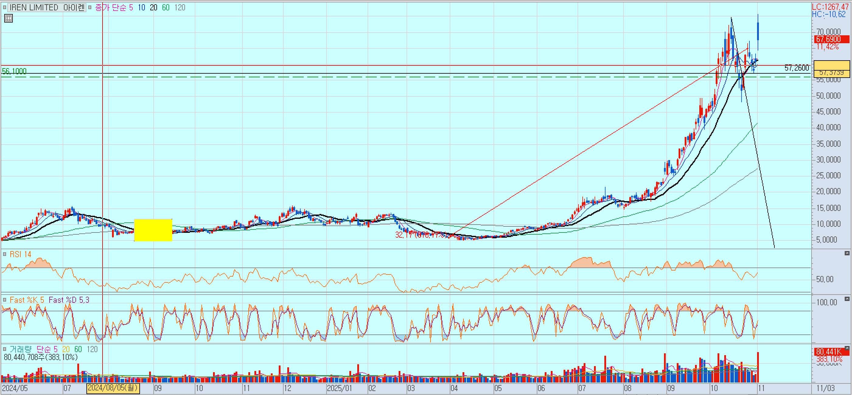 근데 갑자기 갭상승하여 수익률 +70%가까이 갔다.
