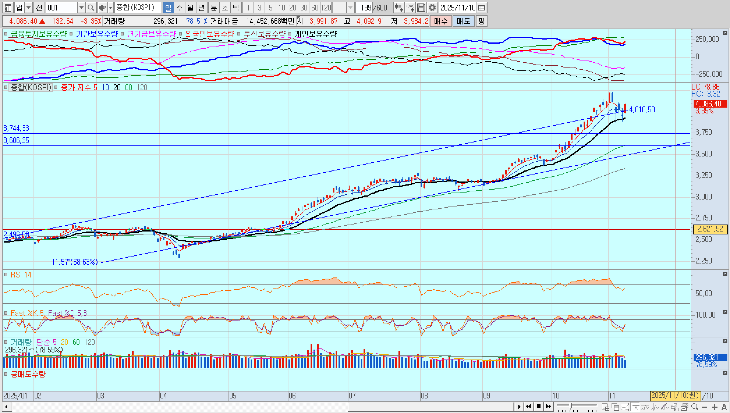근데 3750선까지는 내려오거나 횡보구간이 2달정도는 되어야 자연스럽지 않을까?